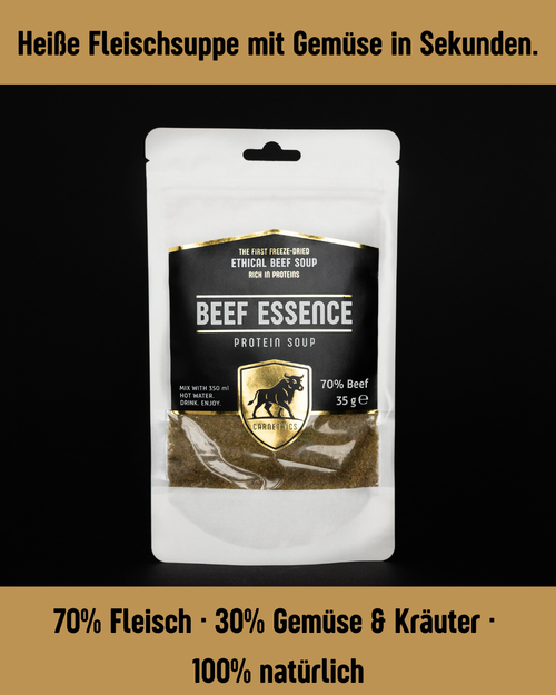 Ready-to-eat, ohne Kühlung bis zu 2 Jahre haltbar, ultraleicht, proteinreich und aus stressfreier Schlachtung.